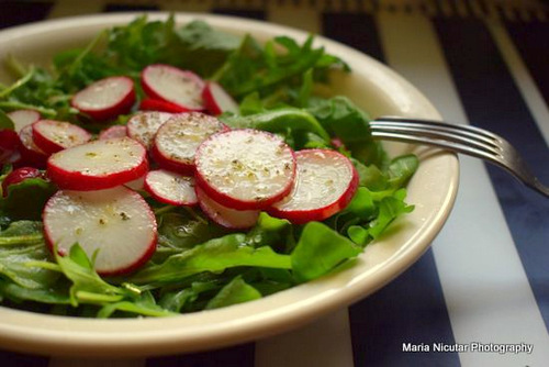 Puteti servi mazarea alaturi de o salata de rucola cu ridichi, stropita cu ulei de masline, suc de lamaie, sare si piper.