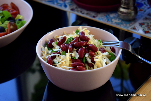 Salata de telina data pe razatoare, patrunjel verde, fasole rosie din conserva, ulei de masline, suc de lamaie.