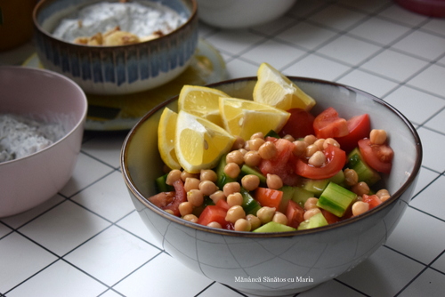 Nautul se fierbe si se scurge bine sau folosim direct din conserva/ borcan. Il combinam cu rosii tocate cuburi, castraveti decojiti si tocati cuburi, sare, piper, ulei de masline, suc de lamaie si patrunjel tocat marunt.
