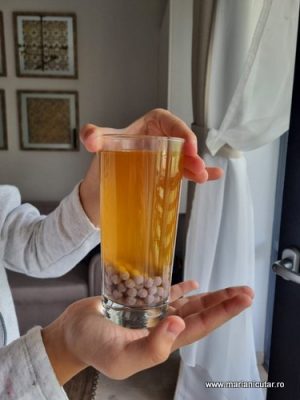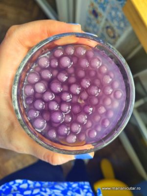 In ceaiul deja pregatit, dam drumul la perlele de tapioca si asta e tot. Cu zahar, cu miere, fara nimic 🙂