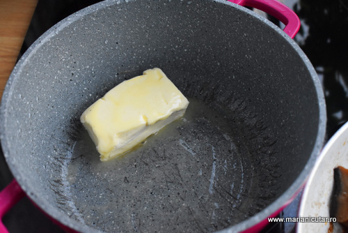 - Separat punem untul la topit intr-o oala antiaderenta sau de inox sau de ceramica.