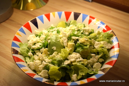 Salata mediteraneana cu avocado: salata verde, avocado, feta, ulei de masline, suc de lamaie, sare, piper. Nici nu va pot explica in cuvinte cat de buna si gustoasa este aceasta salata. Este o mancare specific mediteraneana si va deveni un all-time favourite pentru toti cei care o incearca.