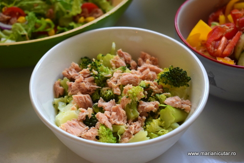 Broccoli innabusit cu ton, ulei de masline, suc de lamaie, sare si piper. Este o mancare mediteraneana delicioasa, hranitoare si care aduce aport mare de nutrienti si antioxidanti.