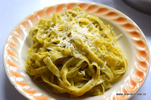 Paste cu sos pesto si parmezan. Reteta este aici si este minunata. Va asigur ca este o mancare sanatoasa, tipic mediteraneana, foarte gustoasa si super hranitoare.
