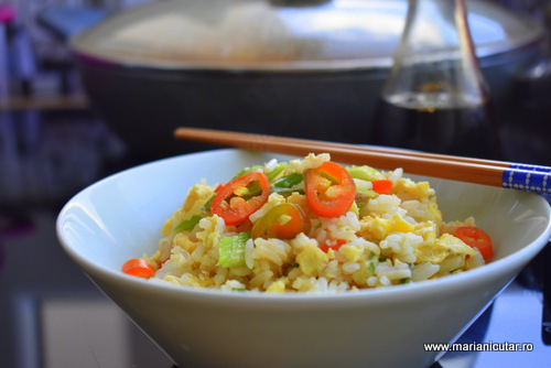 Egg Fried Rice este denumirea pe care o gasim la restaurantele asiatice din toata lumea. Toti fanii bucatariei asiatice stiu ce este Egg Fried Rice si il consuma super des. Si asta se intampla pentru ca odata ce incerci aceasta mancare delicioasa, nu mai poti uita de ea data viitoare cand o vezi in meniu 🙂 O vei comanda 100%. Este o mancare sanatoasa, satioasa, fara carne, se digera rapid, are proteine, are carbohidrati, are fibre si grasime sanatoasa.
