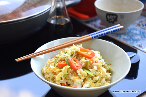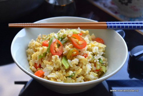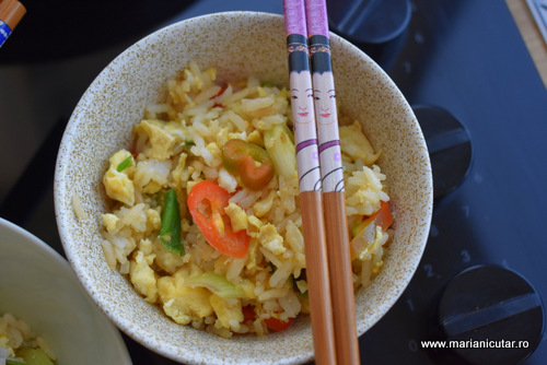 Daca am traduce Egg Fried Rice in romana, ar fi ceva de genul: orez prajit cu ou. Dar de fapt orezul nu este prajit si pe langa oua, avem si legume. Gastronomia asiatica foloseste foarte multe legume si majoritatea sunt super gustoase. In bucataria asiatica nu veti gasi legume de genul cartofi, rosii, vinete dar veti gasi ardei gras, ceapa verde, usturoi, bambus, ciuperci multe si variate si multe altele.