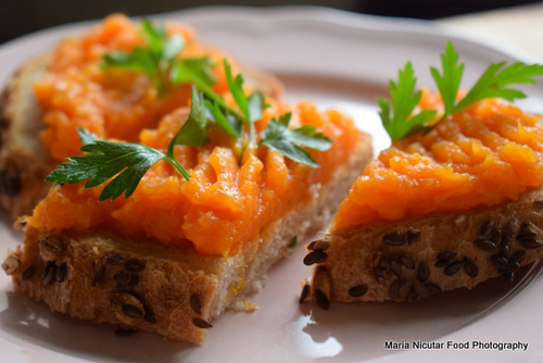 Cartofi dulci 🙂 Cartofii dulci se decojesc, se toaca, se fierb, se piseaza cu sare, piper, ulei de masline si usturoi pisat marunt. Piure-ul de cartofi se decoreaza cu patrunjel verde si se poate servi simplu sau pe paine 🙂