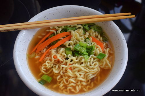 Taitei asiatici cu legume (morcovi, ceapa verde, ardei gras) 🙂 Fierbem legumele in apa suficienta si adaugam ghimbir, sare, piper, sos de soia, ardei iute. In supa adaugam taiteii fierti si servim 🙂 Este o super mancare de post, sanatoasa si delicioasa.