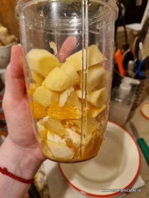 Punem la blender puternic toate ingredientele si mixam bine de tot. Obtinem o pasta cremoasa si delicioasa si credeti-ma ca o sa fiti tentati sa o savurati ca atare, de parca ar fi un sorbet delicios. Fiica mea chiar mi-a propus sa punem la congelator ca sa obtinem inghetata tip sorbet.