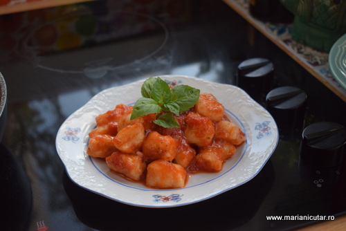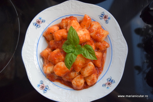 Gnocchi cu sos de rosii, usturoi si busuioc. Reteta italieneasca simpla