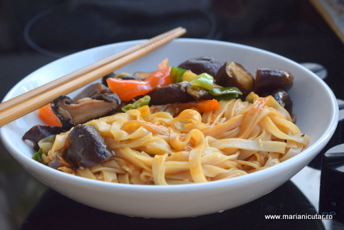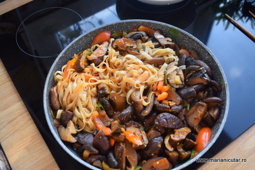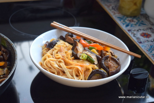 Mancare asiatica acasa: Taitei cu ciuperci si legume trase la tigaie