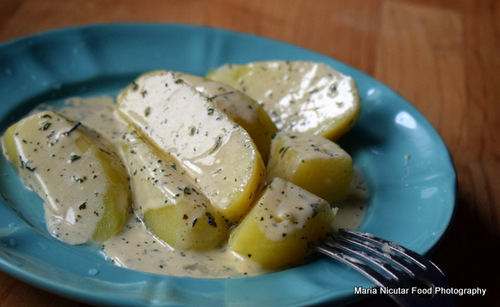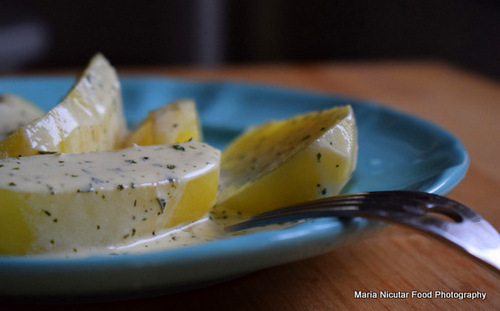 Astazi va ofer o reteta de cartofi fierti cu sos de iaurt si usturoi si sper sa va placa mult.