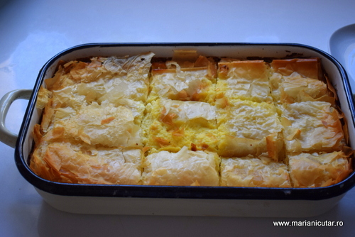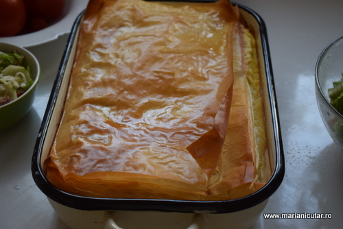 Dar va imaginati ca placinta arata muult mai ok. Si este super pufoasa, genul de placinta care se simte usor gumata, pufoasa, elastica 🙂 Asta este datorita foilor care sunt super elastice iar pufosenia este datorita oualelor.