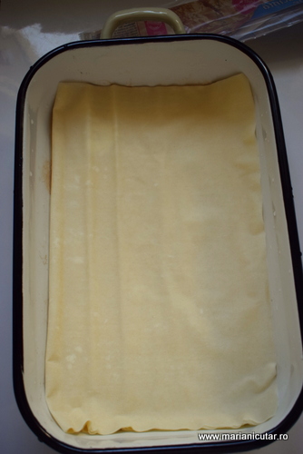 3. Intr-o tava de cuptor vom pune 2-3 foi de placinta si apoi turnam din amestecul nostru 2-3 polonice sau cat este necesar cat sa acoperim toata foaia.