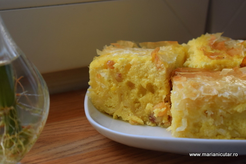 Placinta cu iaurt se taie cand se raceste, nu mai devreme. Foile de deasupra au devenit crocante si copiii mei le-au mancat inainte sa apuc eu sa fac poze asa ca poza de mai jos este cea mai frumoasa varianta pe care o am in aparat :))