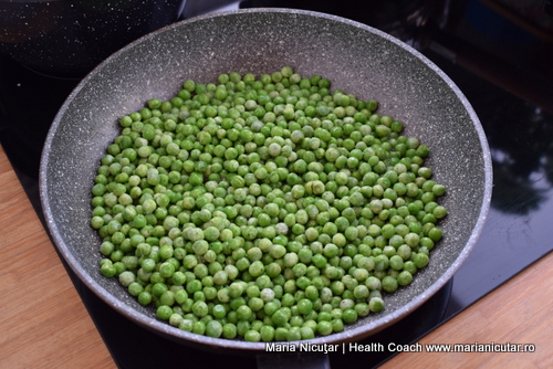 - In paralel, tragem la tigaie mazarea cu putin ulei si putina apa. O luam direct din punga, congelata, o punem in tigaie si ii dam focul potrivit.
