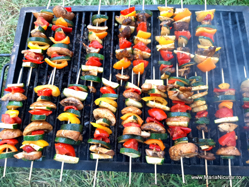 Legume la gratar: dovlecei, rosii, ardei kapia, vinete, ciuperci Champignon. Toate se toaca felii de cam aceeasi marime. Se amesteca intr-un bol mare cu sare, piper, boia de ardei, verdeturi aromatice uscate, usturoi pisat marunt si nu numai. Le lasam putin sa se infuzeze toate aromele si apoi le infigem pe frigarui. Le coacem pe gratar, indiferent ca este gratar in aer liber sau gratar de aragaz. Gustul nu este chiar acelasi dar merita din plin.