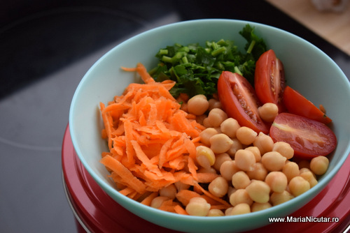 Toate ingredientele se toaca si se combina intr-una dintre cele mai gustoase salate din lume. Adaugam si sare, piper, verdeturi aromatice, dupa gust. Este o mancare sanatoasa, una dintre cele mai inspirate idei de retete vegetariene sanatoase, simple si rapide.