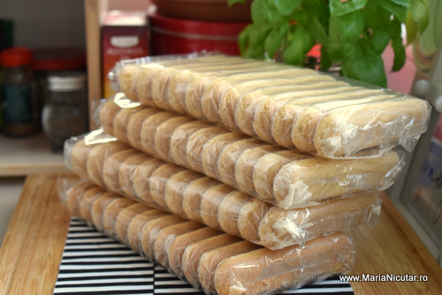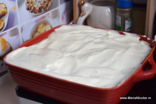 - Asezam un nou strat de piscoturi pana cand terminam si umplem tava.
