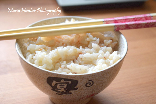 Si daca vreti orez asiatic bob cu bob, va sfatuiesc sa va luati o oala antiaderenta. O cana de orez are nevoie de 2 cani de apa, foc mic si capacul pus. Nu amestecati. Asteptati pana cand apa s-a evaporat. Stingeti focul si rasfirati orezul cu o furculita 🙂
