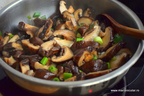 Ciuperci Shiitake, champignon, ciuperci urechi de lemn, orice ciuperci aveti la dispozitie 🙂 Mai jos sunt ciuperci Shiitake pe care eu le ador si pe care le puteti cumpara de la magazinele asiatice.