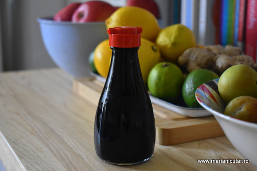 Sos de soia si tofu – nu se poate fara sos de soia si probabil ca nici fara tofu fiindca aceste doua ingrediente stau la baza a sute sau mii de retete asiatice. Doar sa fie din ingrediente naturale. Nu folosesc sos de soia care sa contina coloranti si monoglutamat.