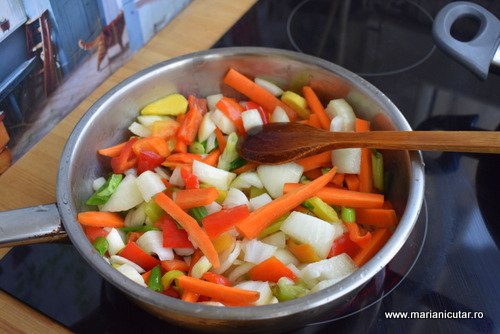Legume de tot felul, de la ceapa alba si ceapa verde, la usturoi, ardei gras, ardei kapia, morcovi, bok choy, varza, mazare etc. Mancarea asiatica are nevoie de multe legume 🙂 Este considerata a fi o mancare sanatoasa si foarte hranitoare. Noi controlam ingredientele si noi decidem ce condimente vom folosi si cata sare adaugam in ea! Eu nu pot sa mananc mancare prea sarata si nici prea picanta, asa ca imi controlez foarte atent ingredientele asiatice pe care le folosesc.