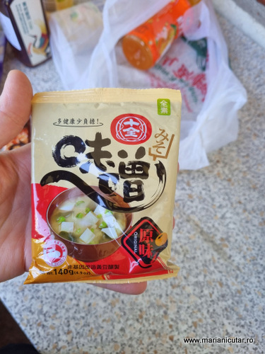 Mai jos este pasta Miso la plic individual si il puteti folosi proaspat deschis, pe tot odata 🙂 Il puneti in supa calda si se dizolva imediat. Este pasta Miso naturala 🙂
